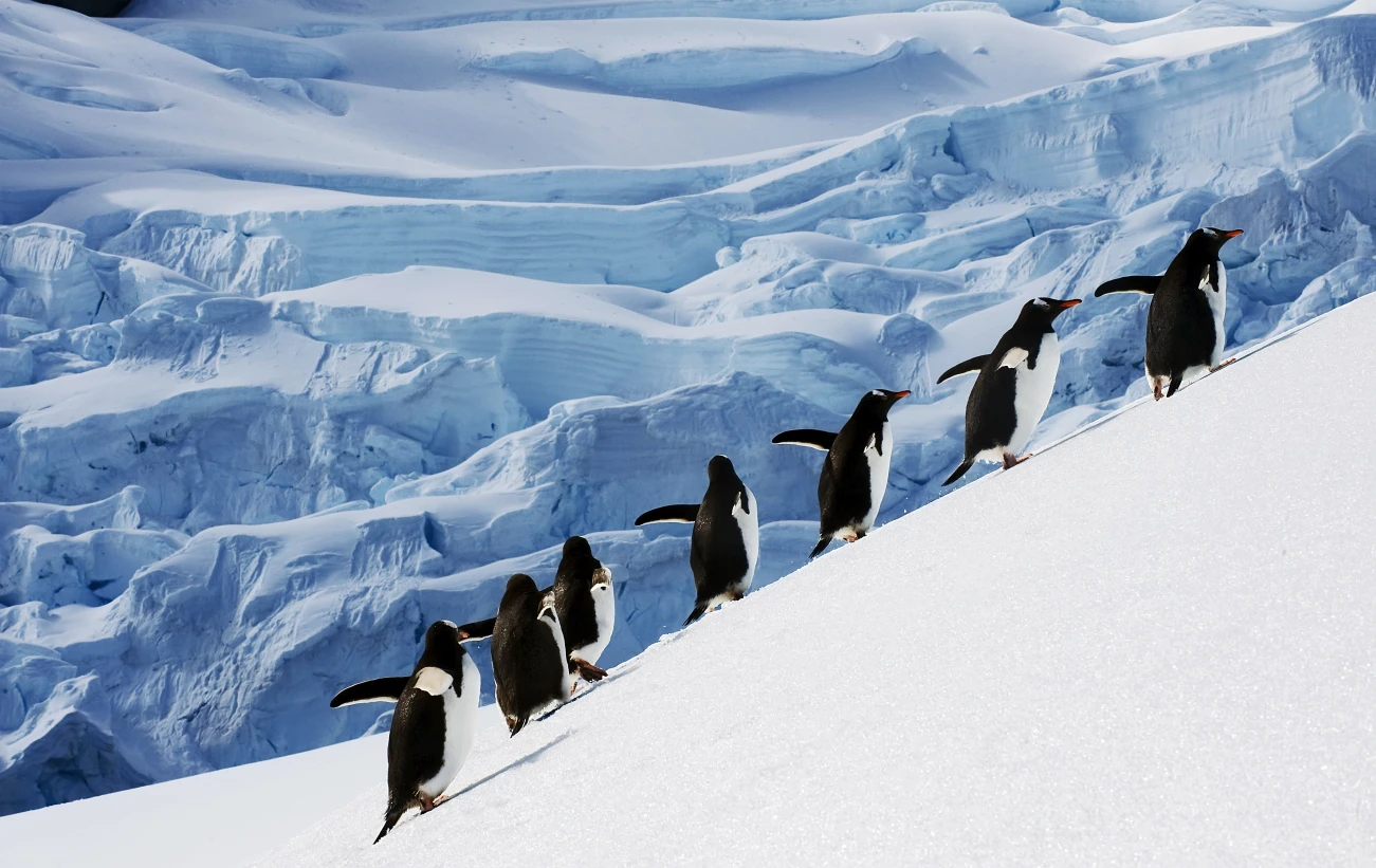 Në disa pjesë të Antarktidës, akulli është aq i pastër dhe i dendur saqë drita e diellit mund të depërtojë deri në 80 metra thellësi. Kjo krijon një shkëlqim blu të thellë që nuk gjendet askund tjetër në natyrë. Brenda këtij akulli ndodhen flluska ajri të bllokuara prej miliona vitesh, të cilat shërbejnë si arkiva të atmosferës së lashtë të Tokës.